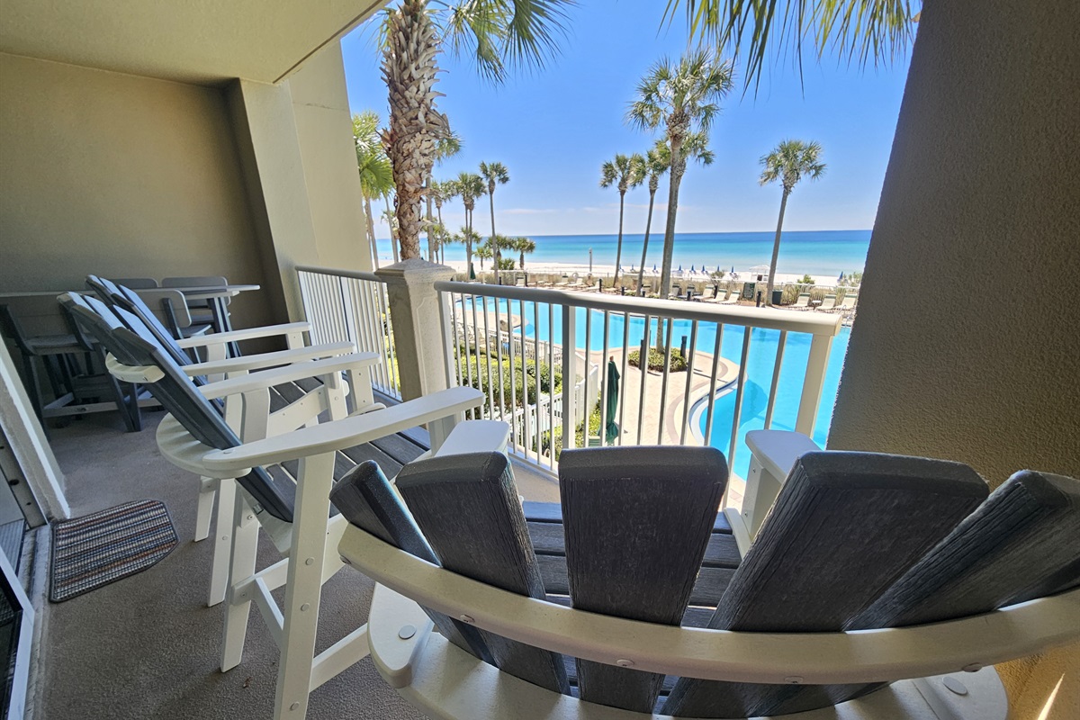 This 2nd-floor condo overlooks Grand Panama's beautiful pool and hot tub and has unobstructed views. Enjoy the roaring ocean while relaxing on the balcony. Why wait for the elevator? This unit is adjacent to the stairwell. Just one flight of stairs is all that it takes to be enjoying the amenities! The quick and easy access to the unit is perfect for pet owners ($100 pet fee plus see additional pet policy & only under 25 lbs, more info below). This is one of the very few beachfront resorts that allows pets.